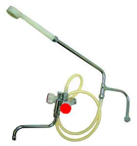 Смеситель для дровяных колонок поставляется в коробке (смеситель, душ и шланг).